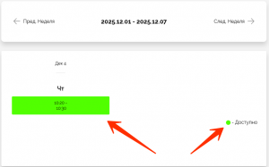 2. Выбираем свободную дату и время, будет выделено зеленым цветом
